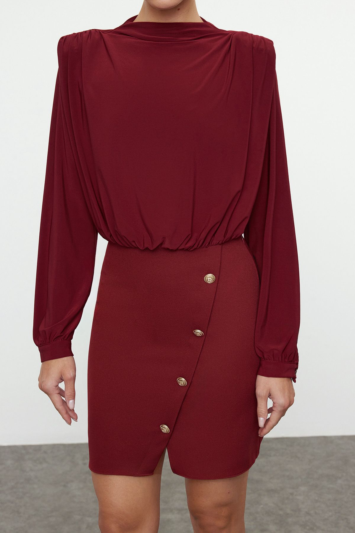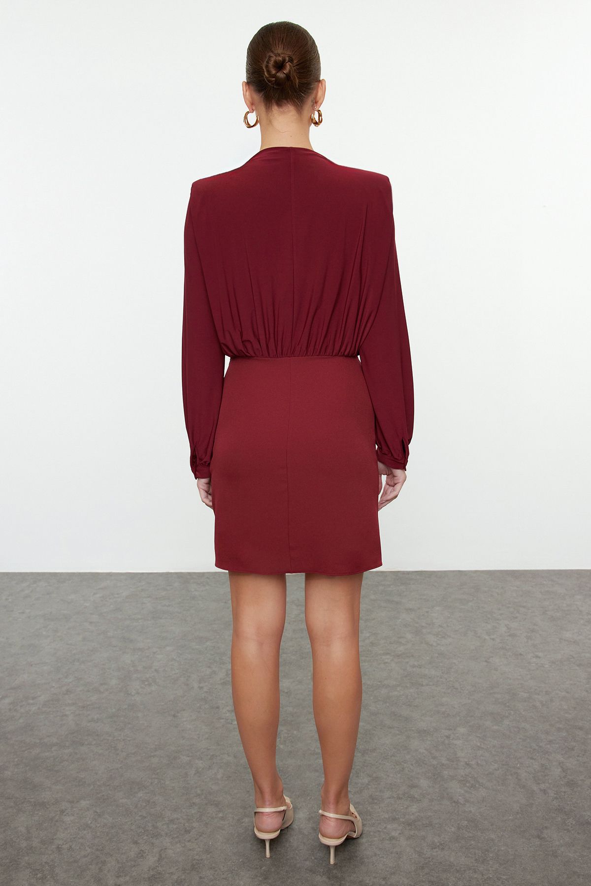Bordo Düz Vatkalı Mini Dokuma Elbise TWOAW24EL00483