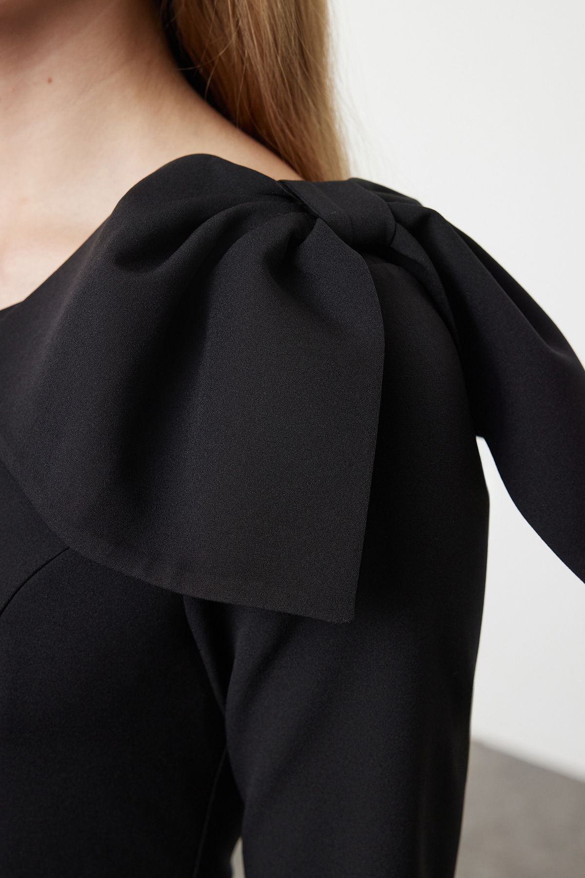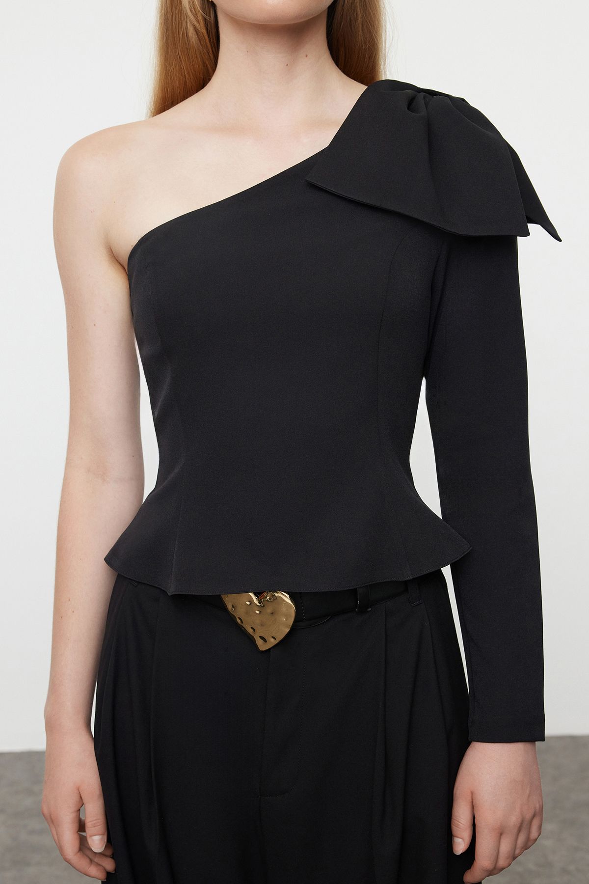 TRENDYOLMİLLA Siyah Dokuma Fiyonklu Bluz TPRAW25BZ00041