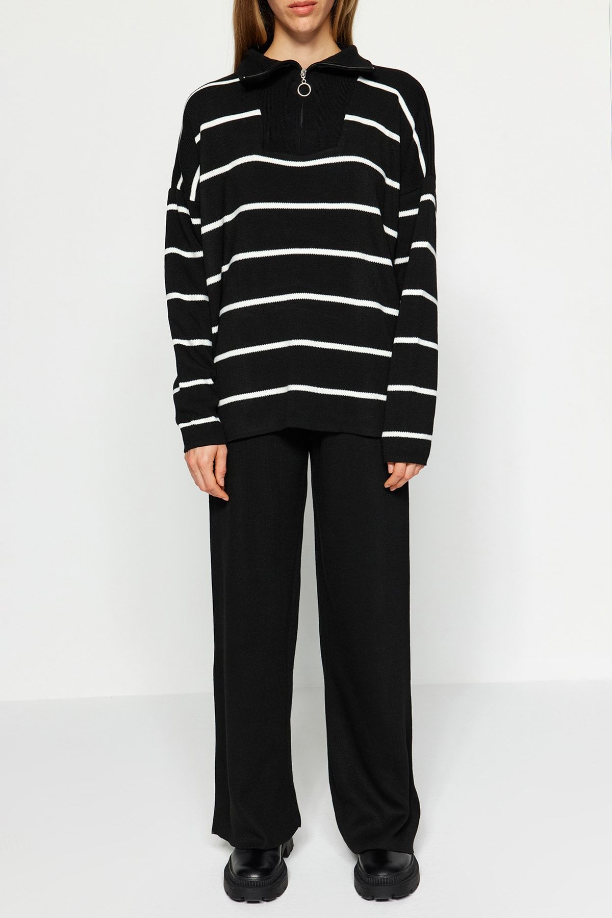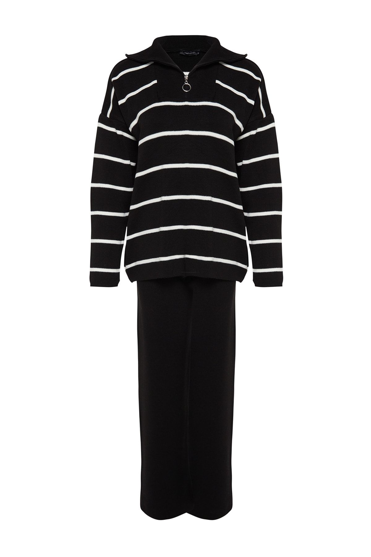 TRENDYOLMİLLA Siyah Geniş Kalıp Fermuarlı Triko Alt-Üst Takım TWOAW24AU00025