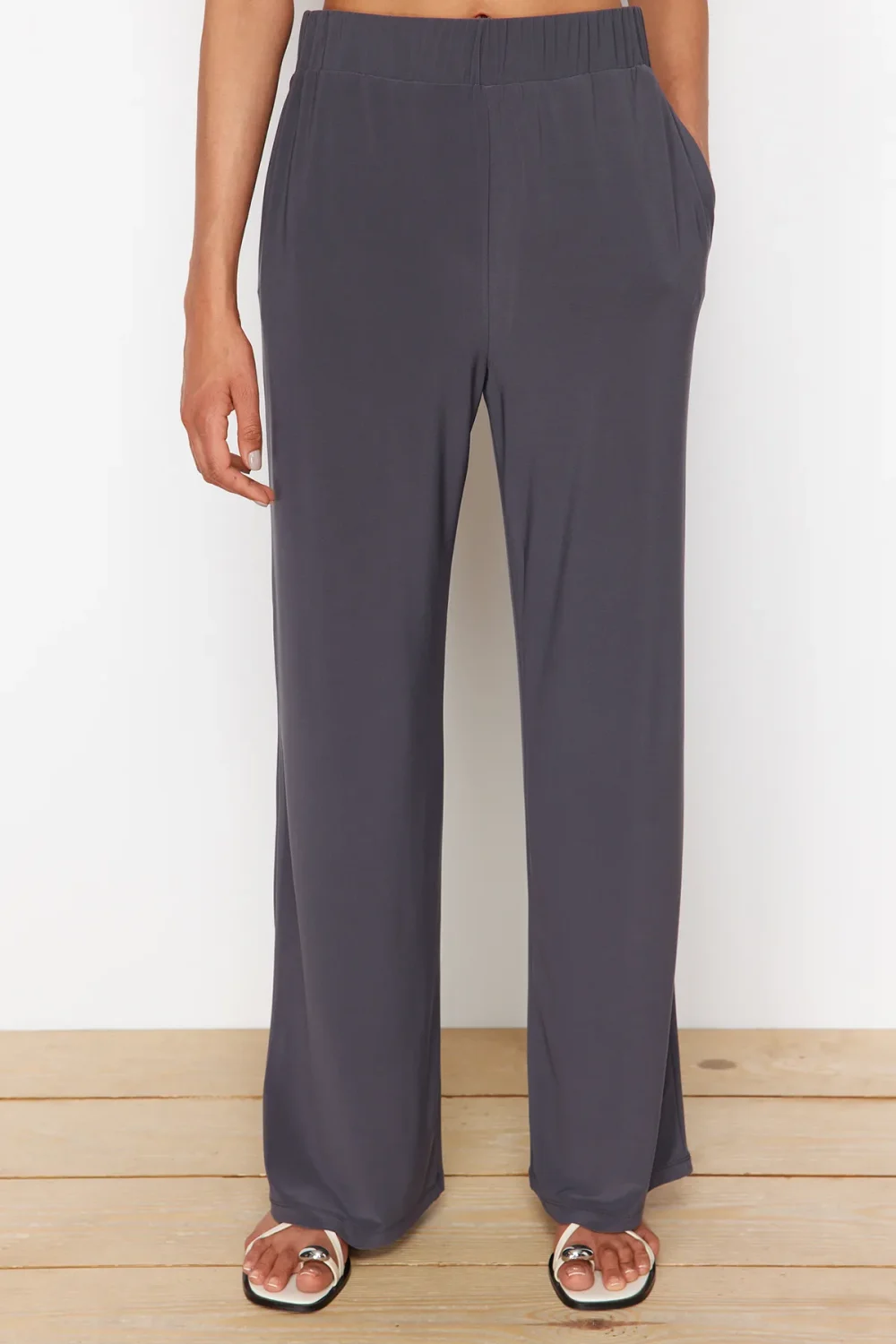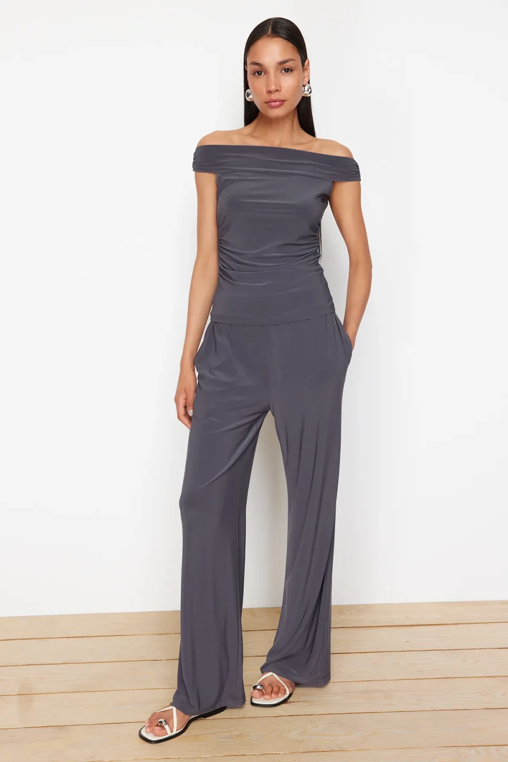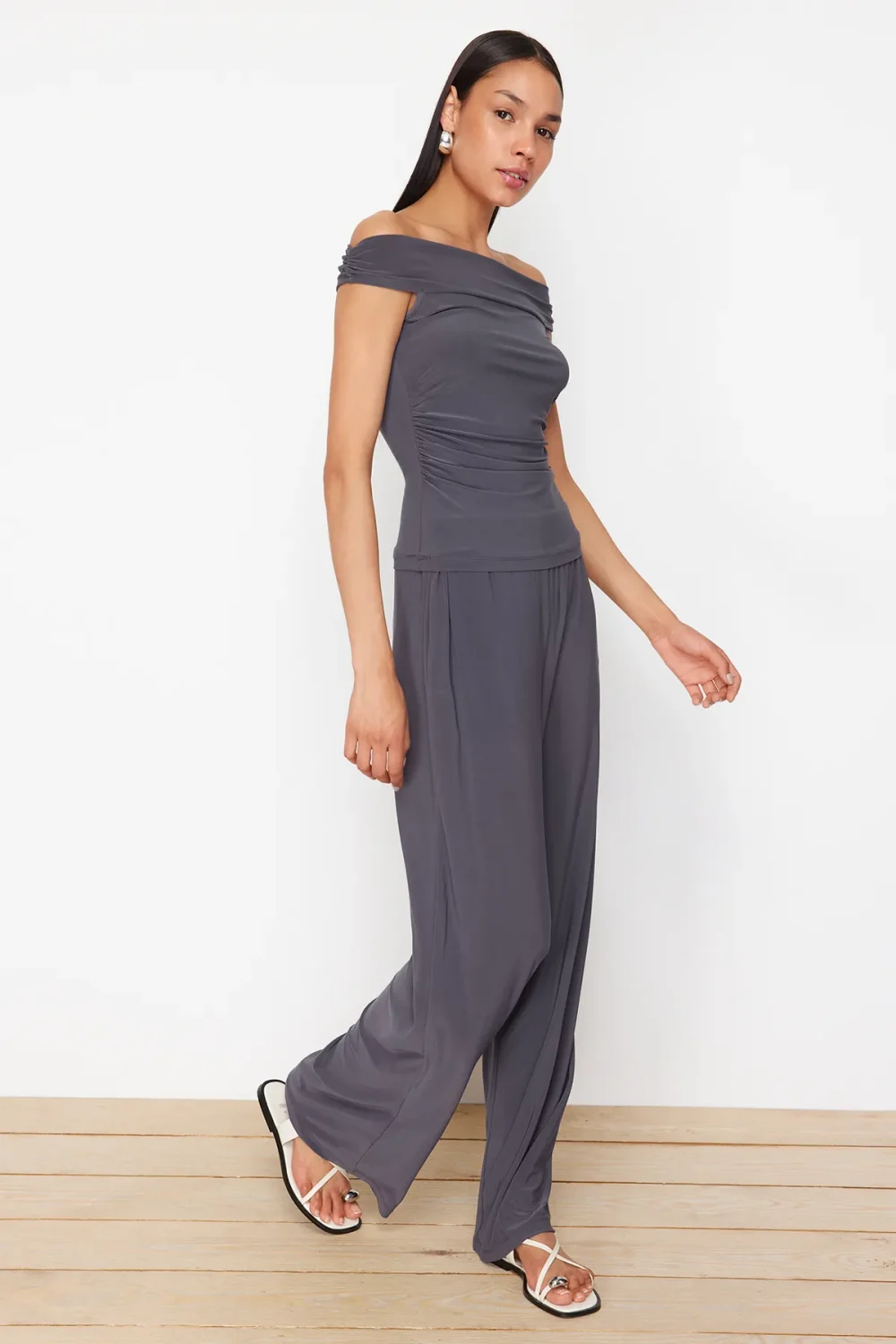 Anthracite Flexible Knitted Blouse/Pants Top-Bottom Set