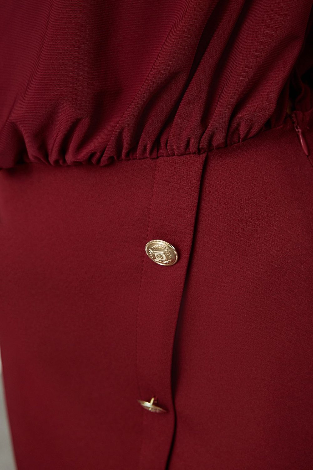 - The padded waist detail gently hugs the body, creating a feminine silhouette.