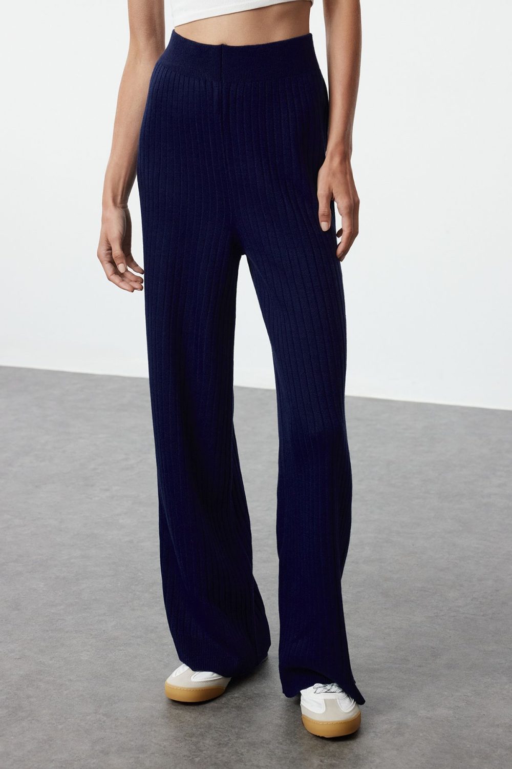 - The cardigan-and-pants combination seamlessly blends elegance and comfort.