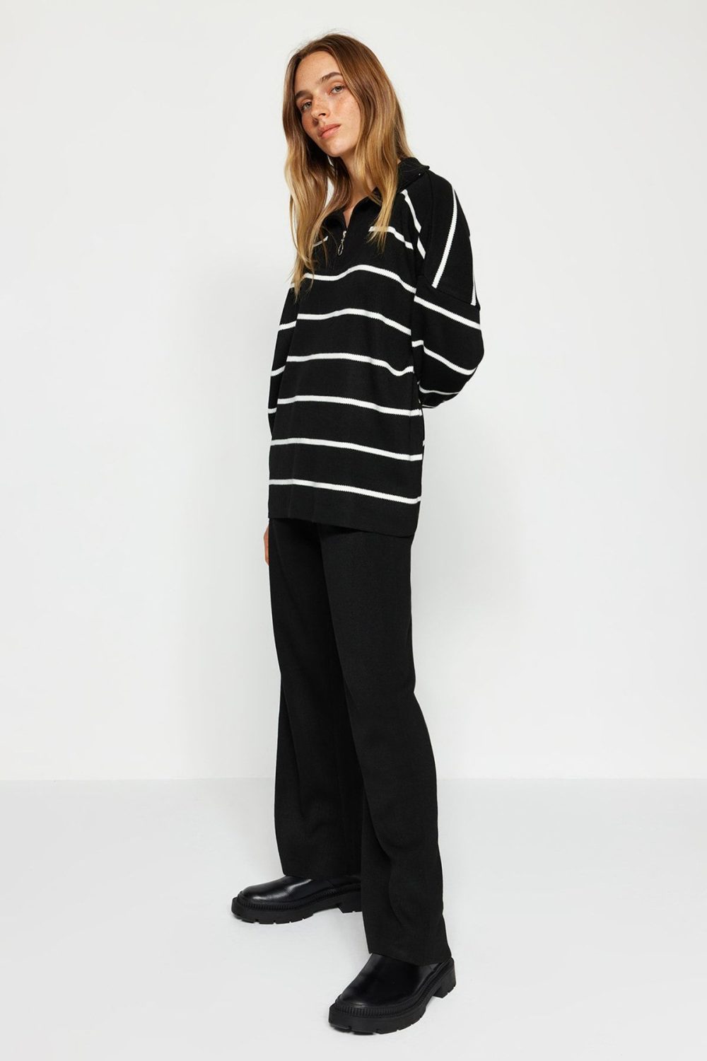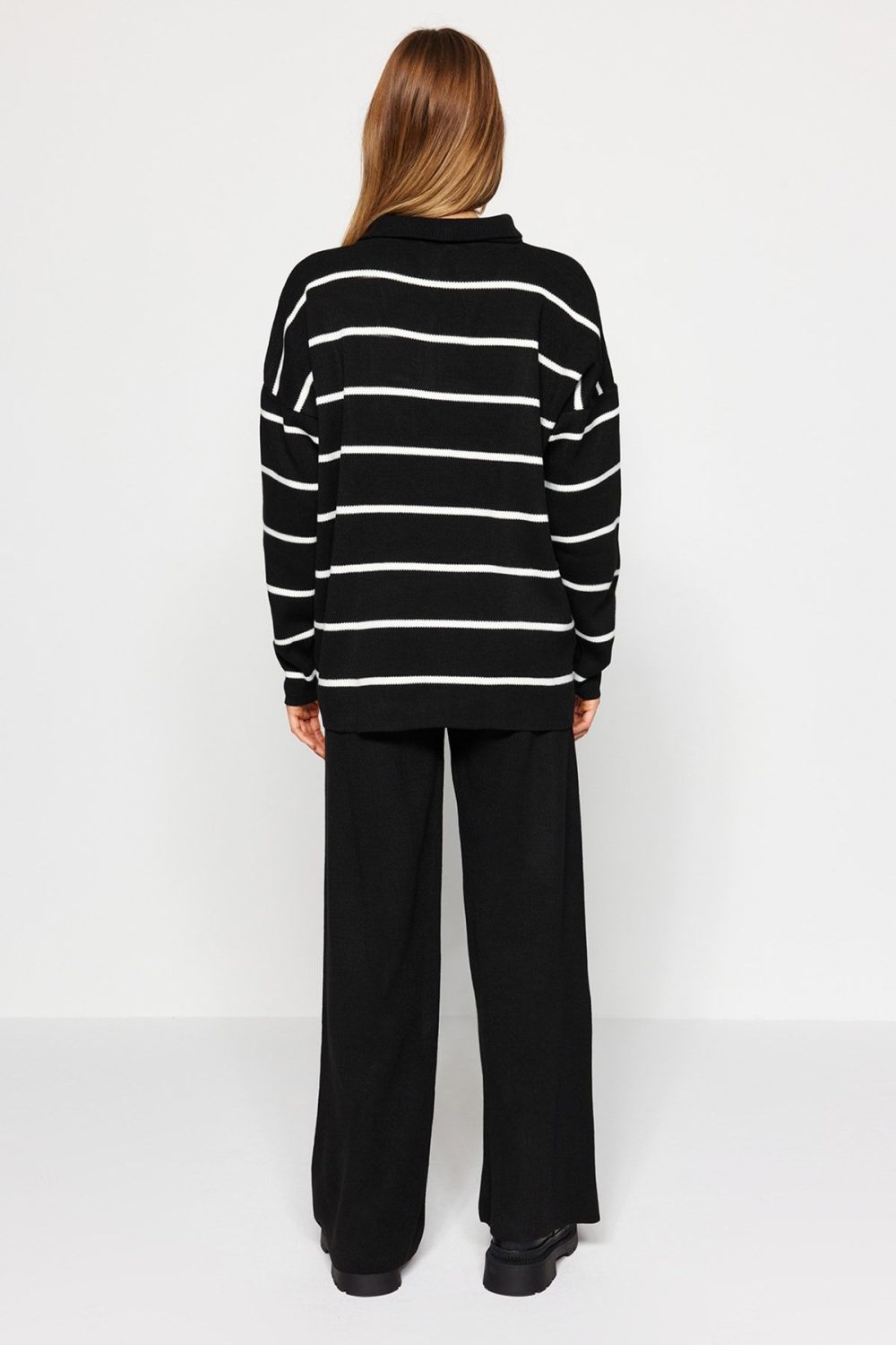 “An ideal wide-fit zippered knitwear top and bottom set for a comfortable and stylish look.